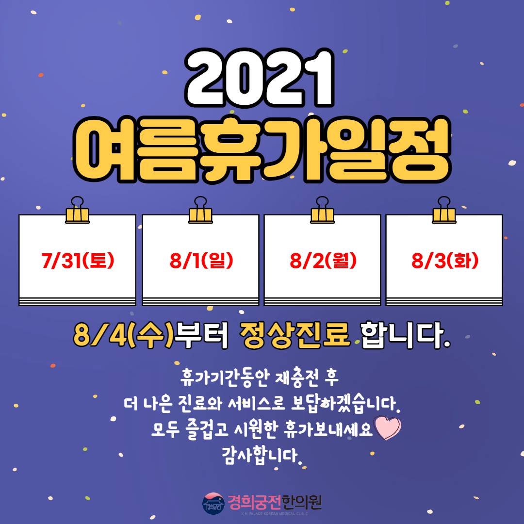 휴가기간동안 재충전하여 더 나은 진료와 서비스로 보답하겠습니다.